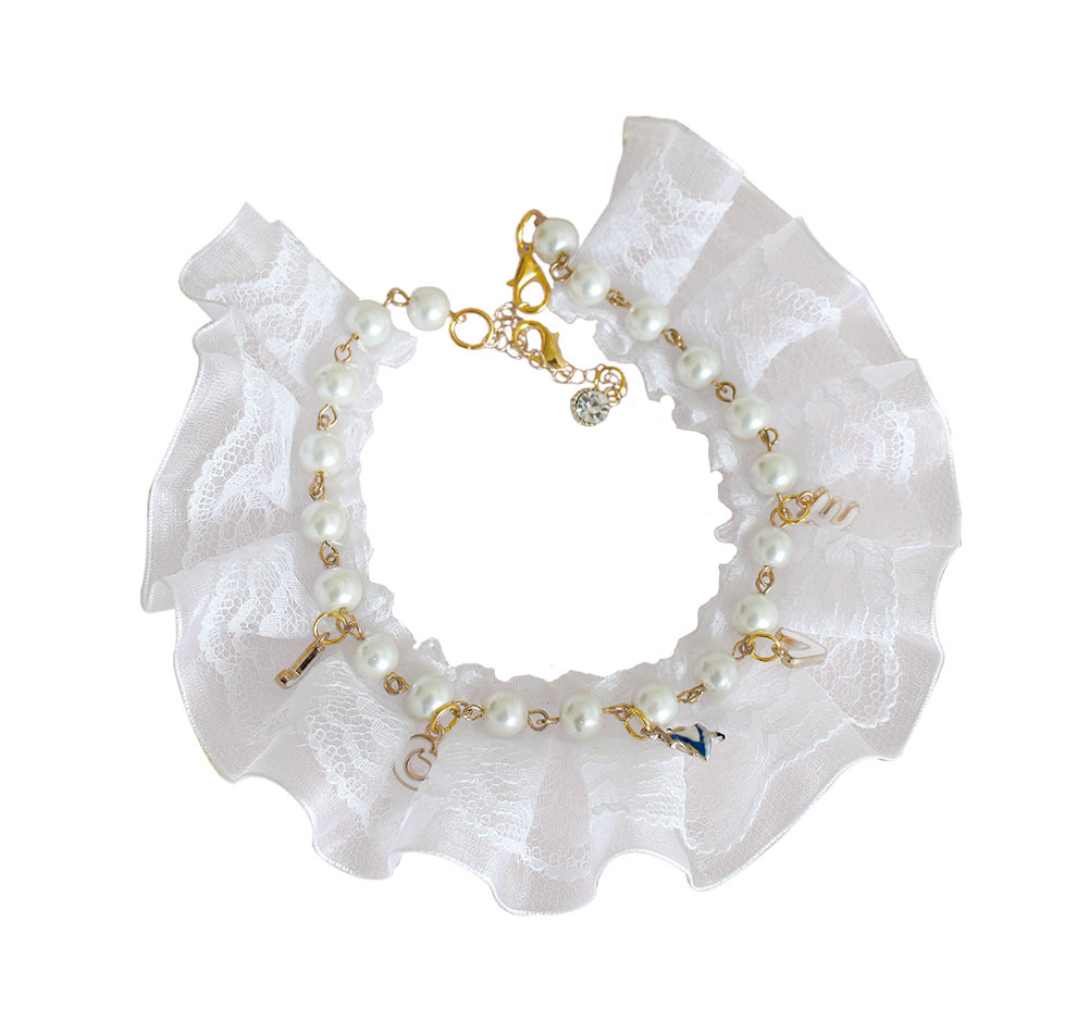 Luxurious Pearls Pet Collar With Lace Decorative Necklace for Medium Cat Dog 10-12 inches Luxurious Pearls Pet Collar With Lace Decorative Necklace for Medium Cat Dog 10-12 inches